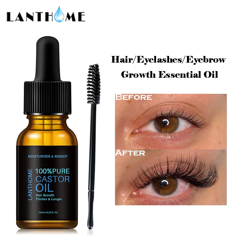 Name: Aceite de ricino puro, suero de crecimiento para las pestañas, tratamiento del cabello, cejas, crecimiento rápido, aceite esencial líquido, maquillaje, potenciador de pestañas, 10ml