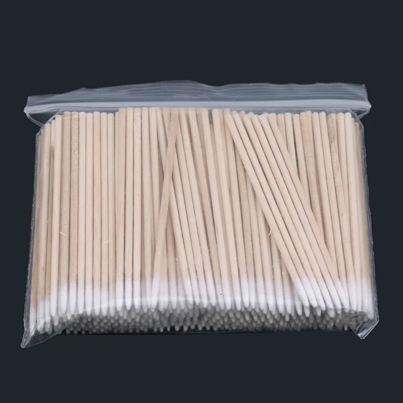 Name: 300 Uds mango corto de madera pequeño señaló cabezal con punta hisopo de algodón cejas tatuaje belleza maquillaje Color de uñas de costura dedicado sucio recoger