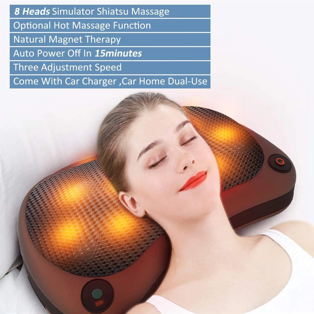 Name: Almohada eléctrica de masaje en cuerpo y cuello, Shiatsu, calefacción para el dolor de cintura y cuello, para hogar y coche, uso Dual